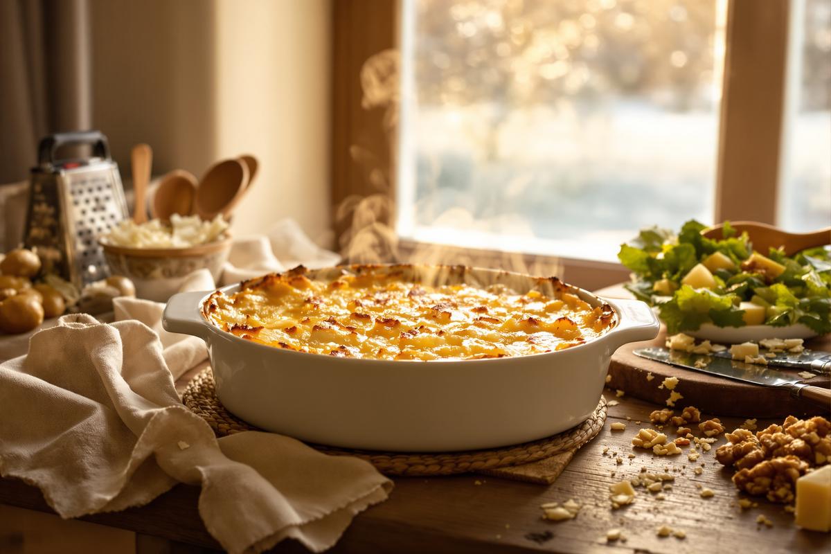 À la fois végétarien, nourrissant et bon marché, ce gratin s’intègre facilement dans votre quotidien. Pendant qu’il cuit, vous avez le temps de souffler un peu, préparer une salade hivernale ou lire un bon livre.